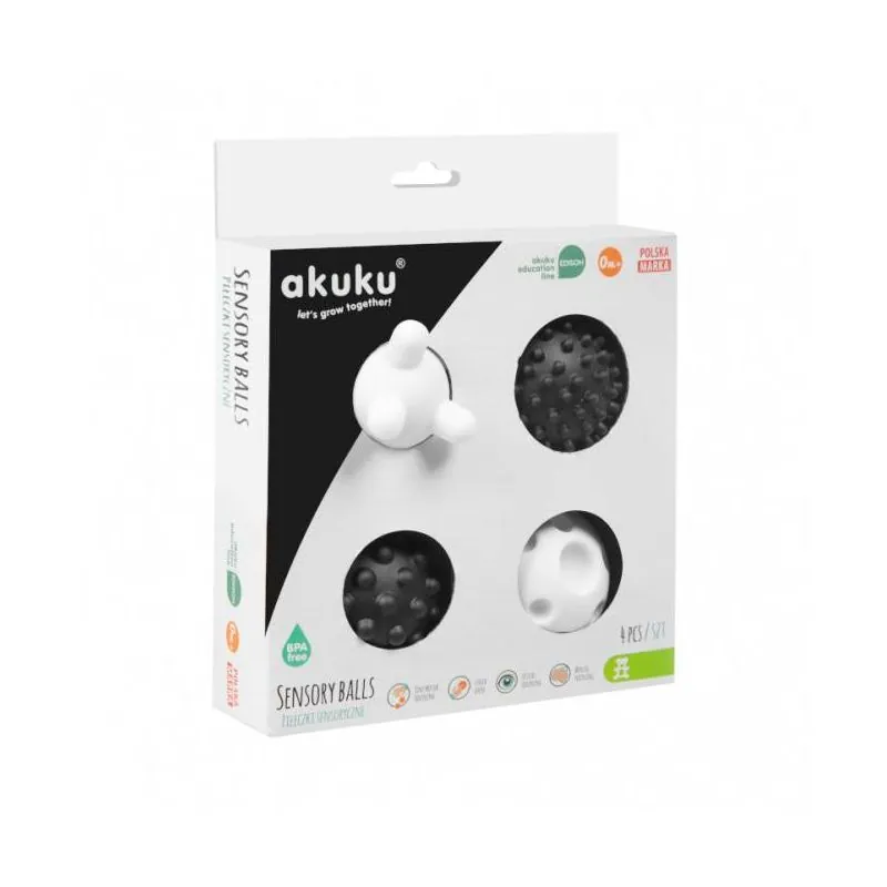 Akuku mīkstie sensorie bumbiņas, 4 gab., Melns/balts A0469