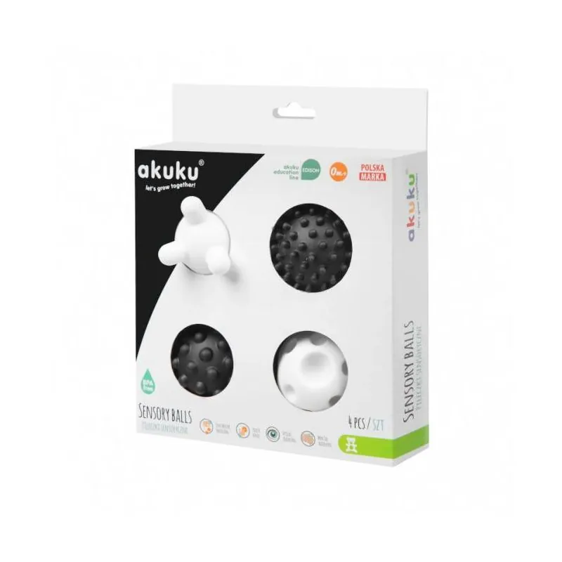 Akuku mīkstie sensorie bumbiņas, 4 gab., Melns/balts A0469