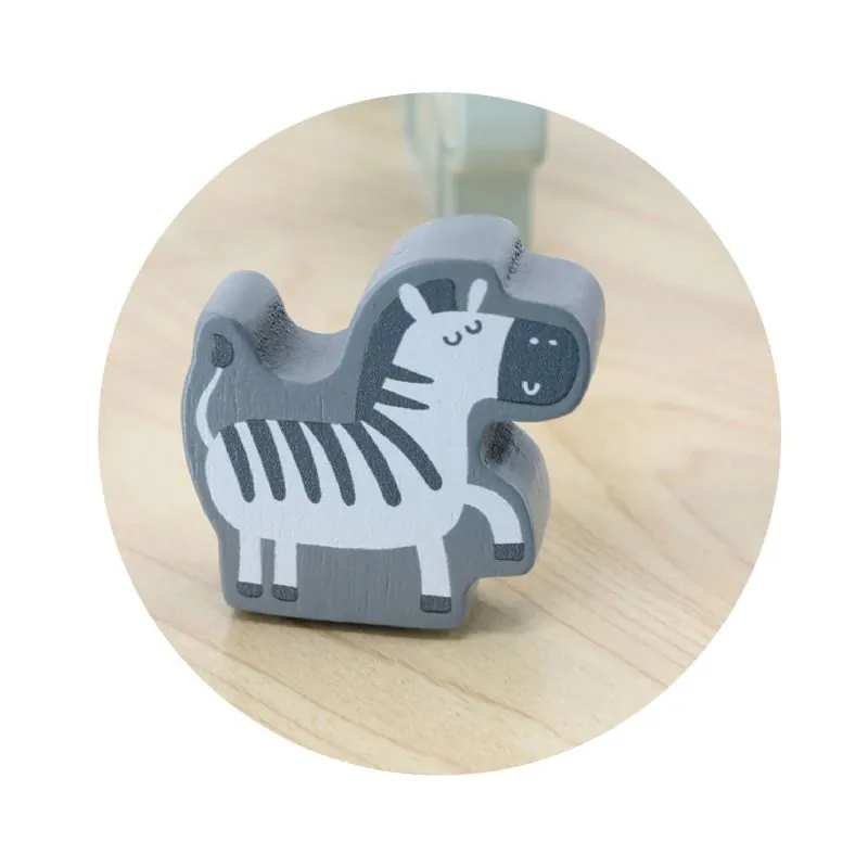 Spēlējoties bērni praktizēs roku prasmes, krāsu un formu uztveri. Metāla cilpās ir krāsainas koka klucīši un trīs klucīši ar dzīvnieku attēliem - lācis, lapsa un ezītis. Rotaļlieta ir izgatavota no lakota koka un krāsota ar netoksiskām krāsām spilgtās krāsās, kas patiks katram lietotājam un sniegs daudz prieka.Atbilst drošības standartiem (EN71 un ASTM).