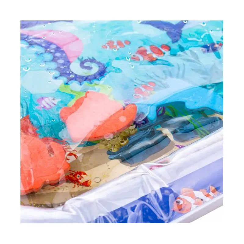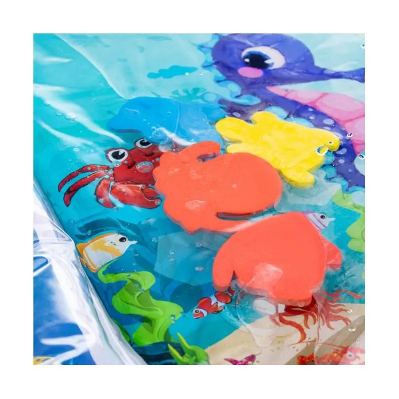 Ūdens paklājiņš zīdaiņiem ir izgatavots no augstas kvalitātes plastmasas, kas garantē izcilu ilgmūžību. Spēlējot uz paklājiņa, bērns mācās izmantot dažādas muskuļu grupas, lai saglabātu līdzsvaru un patstāvīgi kustētos. Tas ir ļoti noderīgs vingrinājums, kas palielina kāju, roku, vēdera un muguras spēku un izturību.