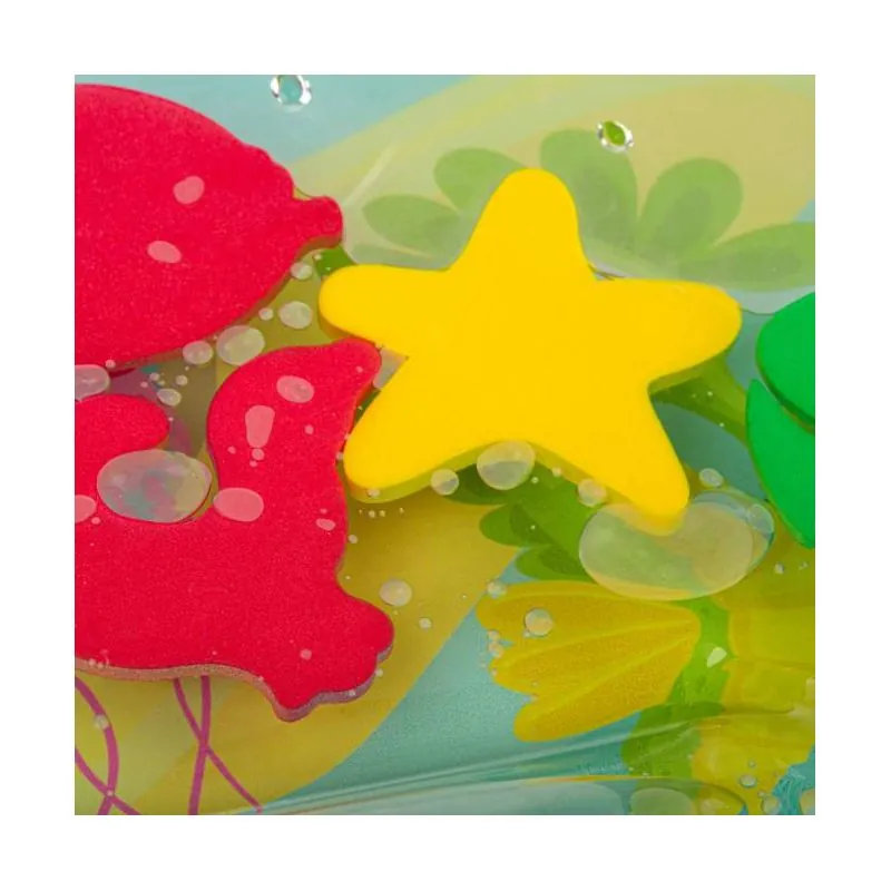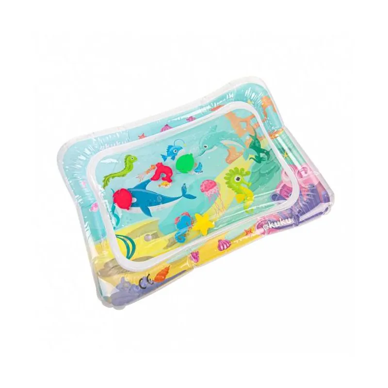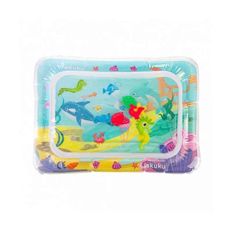 Ūdens paklājiņš zīdaiņiem ir izgatavots no augstas kvalitātes plastmasas, kas garantē izcilu ilgmūžību.Spēlējoties uz paklājiņa, bērns mācās izmantot dažādas muskuļu grupas, lai saglabātu līdzsvaru un patstāvīgi kustētos.Tas ir ļoti noderīgs vingrinājums, kas palielina kāju, roku, vēdera un muguras spēku un izturību.Dažādu krāsu paklājiņš un iekšpusē peldošie dzīvnieciņi palīdzēs bērnam iepazīt jaunas krāsas un formas, kas bagātinās viņa iztēli un koncentrēšanos.Piemērots zīdaiņu attīstībai no 3 mēnešiem.Attīsta galvas, kakla, plecu, muguras un vēdera muskuļus.Uzlabo vispārējās motorikas un sensorās prasmes, veicina ātrāku smadzeņu attīstību.Iekšpusē peld 5 krāsaini dzīvnieki.Nesatur BPA vai citas toksiskas vielas.CE apstiprinājums.Izmēri: 67cm x 49cm.