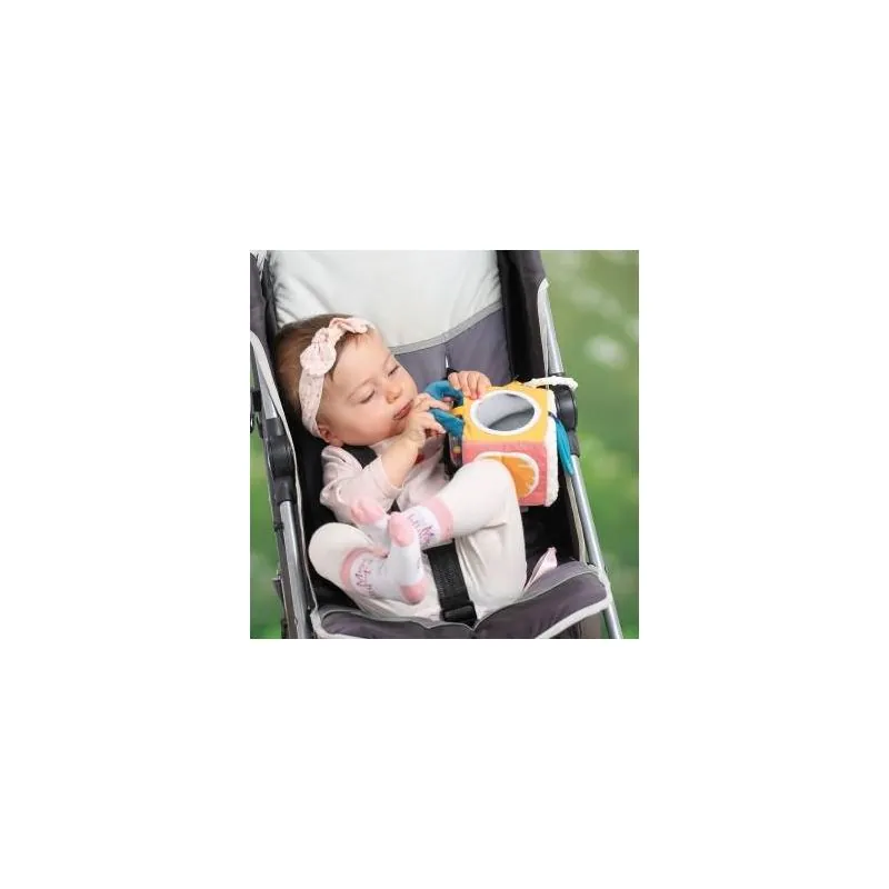 Katra kuba puse ar atšķirīgu audumu un virsmu.Ir spogulītis, grabulis, graužamriņķis, ērts rokturis paņemšanai rokā.Var būt pakārts.Ieteicamais vecums 3 mēn.+Kuba izmērs 10x10x10 cm.Iepakojums plastmasas maisiņš.Rotaļlieta marķēta ar CE zīmi.