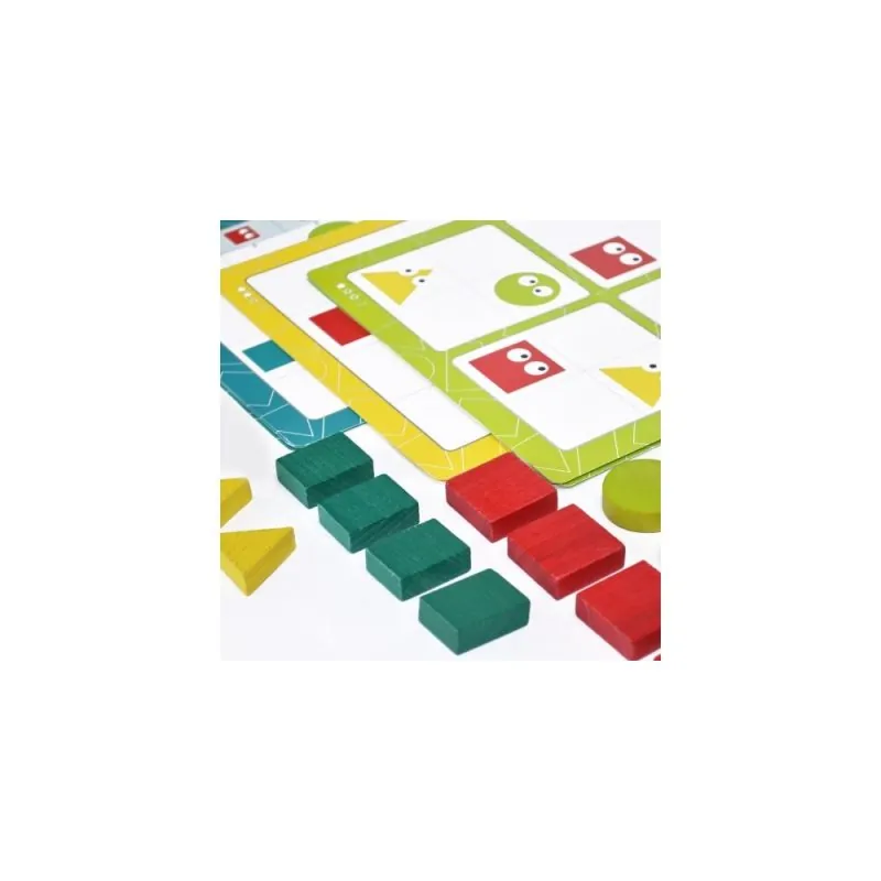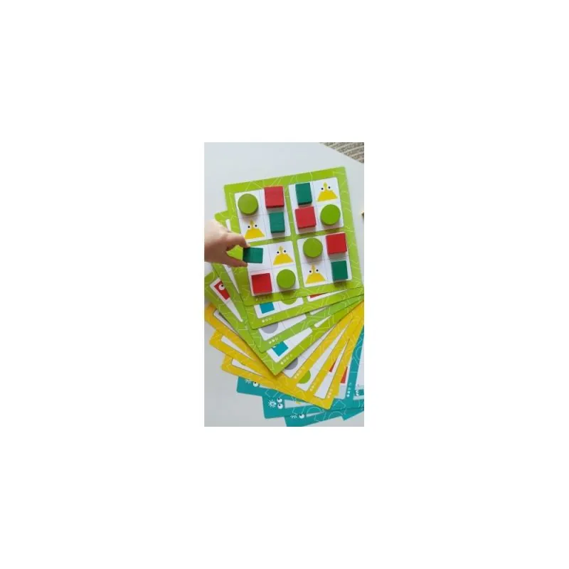 Uz tabulas jāsaliek figūriņas tā, lai katrs figūriņu tips rindā un kolonnā neatkārtotos.