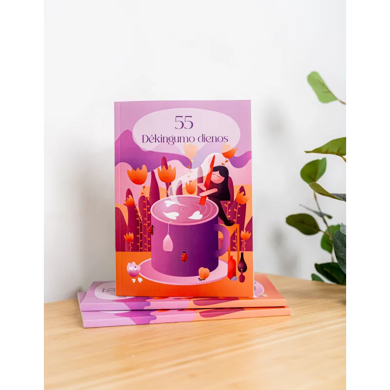 Šis pateicības dienasgrāmata palīdzēs jums atrast pat 55 dažādus iemeslus, lai katru dienu justos pateicīgs un pārvērstu pateicību dzīves veidā, lai viss notiktu viegli un ar prieku! Dienasgrāmata ir paredzēta bērniem un pusaudžiem, bet tā ir piemērota arī pieaugušajiem, kuri pamana, ka viņu prātā pastāvīgi rotē vienas un tās pašas atbildes. Ar "55 pateicības dienas" dienasgrāmatu jūs katru dienu atradīsiet vienu jaunu iemeslu justies pateicīgam, pārdomāsiet par dienas labākajiem mirkļiem, atcerēsieties, ko esat iemācījušies, un pat zīmēsiet!