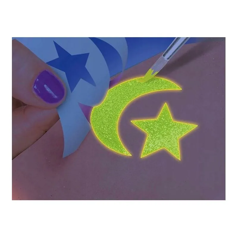 Praktisks galdiņš ar daudziem piederumiem atver iztēles un radošuma vārtus;Komplektā ietilpst lipīgas trafareti, krāsaini spīdumi un ķermeņa krāsas ar „Glow in the Dark“ efektu;Attīsta iztēli, veicina radošumu;Piemērots bērniem no 7 gadu vecuma.