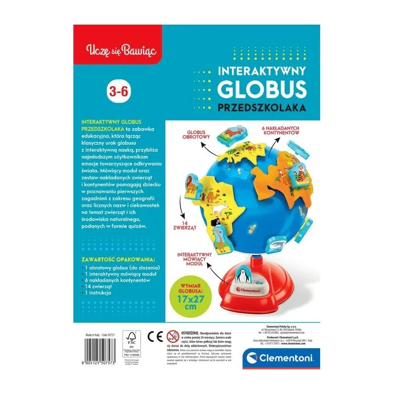 Ja vēlaties iepazīstināt savu mazuli ar dzīvnieku pasauli, kas dzīvo dažādos mūsu pasaules nostūros, izvēlieties "Clementoni" interaktīvo pirmsskolas vecuma bērnu globusu.