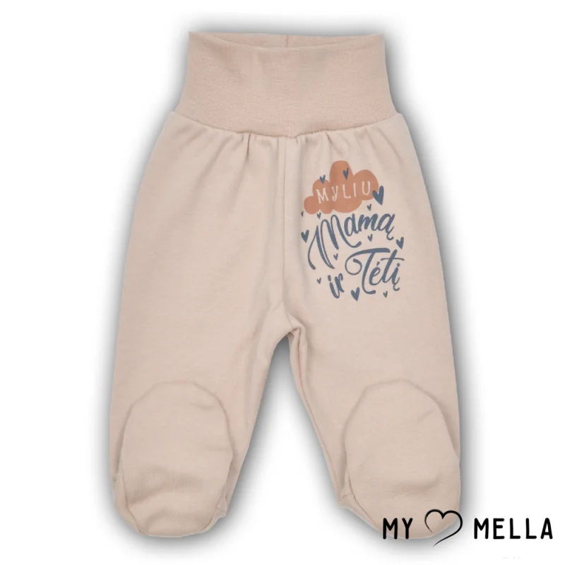Spēlīgas un stilīgas biksītes ar pēdiņām mazulim "Mīlu".Saskaņots moderns dizains un tradīciju praktiskums.Josta bez gumijas, izgatavota no mīksta un elastīga materiāla, tāpēc pat jaundzimušais jutīsies ērti, nesaspiedīs vēderiņu.Var iegādāties šīs kolekcijas: kombinezonu, bodiju.Mazgāt 40 grādu temperatūrā.Radīts Lietuvā!
