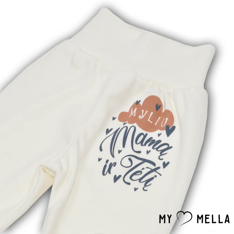 Spēlīgas un stilīgas biksītes ar pēdiņām mazulim "Mīlu".Saskaņots moderns dizains un tradīciju praktiskums.Jostasvieta bez gumijas, izgatavota no mīksta un elastīga materiāla, tāpēc pat jaundzimušais jutīsies ērti, nespiedīs vēderiņu.Pieejams šīs kolekcijas: kombinezons, bodijs.Mazgāt 40 grādu temperatūrā.Izveidots Lietuvā!