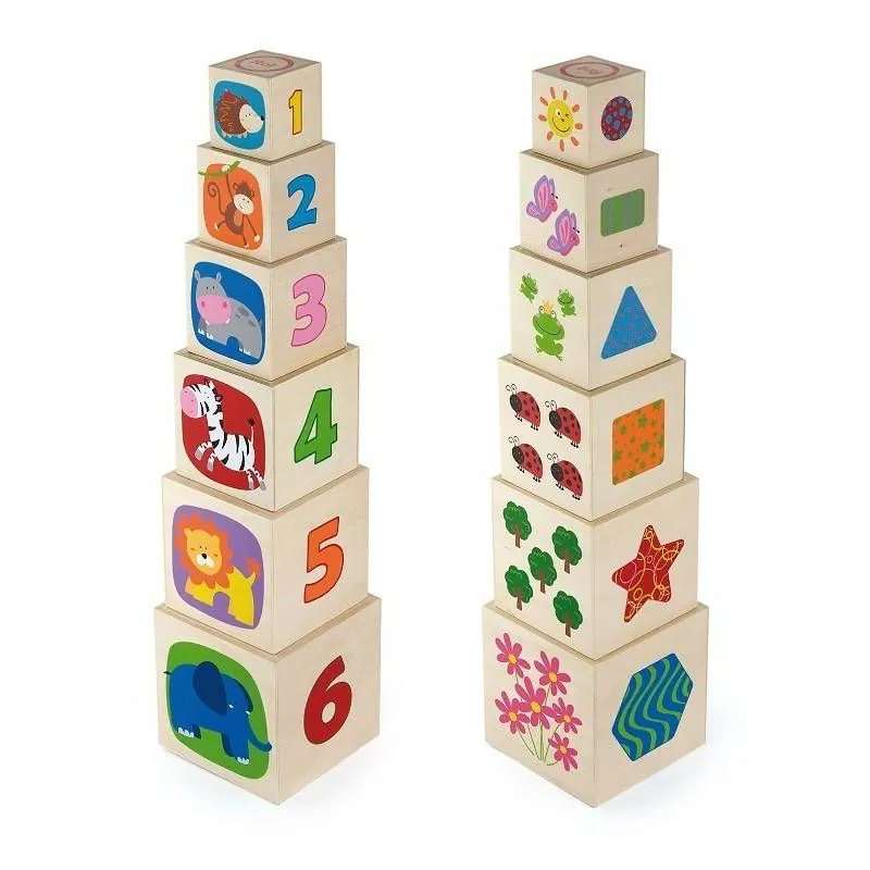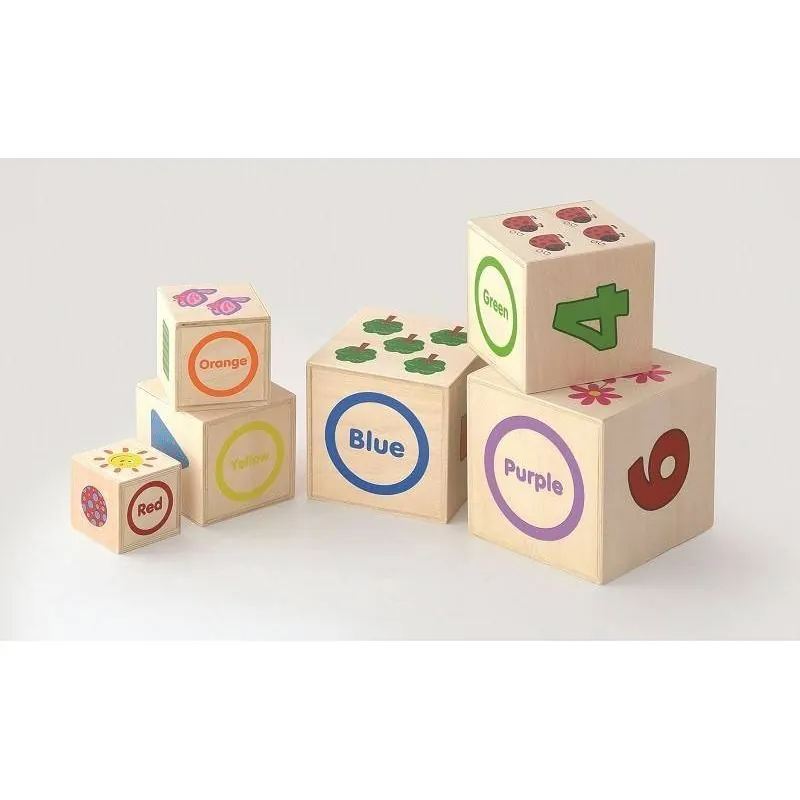 Sešu dažādu izmēru klucīšu komplekts. Katra klucīša siena ar burvīgiem un aci piesaistošiem attēliem.