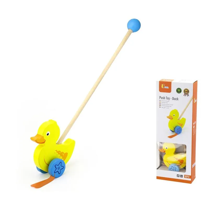 Stumduks īpaši patiks mazajiem, kuri mācās staigāt vai nesen tikko sākuši staigāt patstāvīgi.Krāsainais stūmējs noteikti mudinās jūsu bērnu pilnveidot staigāšanas tehniku.Krāsains, koka, kvalitatīvs, jautrs.Ieteicams bērniem no 18 mēnešiem.