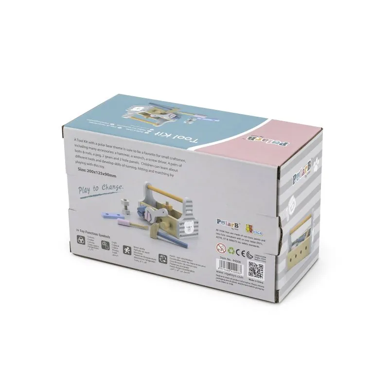 Komplektā ietilpst:Atslēga,āmurs,6 savienojumi,8 rieksti,8 skrūves,4 naglas,kaste.Visa lieta ir izgatavota no dižskābarža koka un krāsota ar netoksiskām spilgtu krāsu krāsām, kas piesaistīs uzmanību un veicinās spēlēšanu, sniedzot daudz prieka.Mūsu prioritāte ir bērnu drošība un augstākā rotaļlietu kvalitāte, tāpēc mēs rūpējamies, lai krāsas, ar kurām krāsojam rotaļlietas, nebūtu toksiskas un atbilstu drošības standartiem (EN71 un ASTM).Rotaļlieta paredzēta bērniem, kas vecāki par 3 gadiem.Izstrādājuma izmēri: 200 mm x 120 mm x 90 mm.