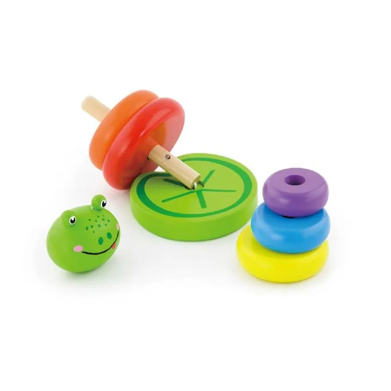 Klasisks rotaļlieta, kas sniegs jūsu bērnam priecīgu, interesantu un radošu izklaidi;Varavīksnes krāsu komplektā ir 6 dažāda lieluma bloki, tostarp viena vardes galvas forma;Pamatā ir tapa bloku uzlikšanai;Piramīda palīdz attīstīt roku un acu koordināciju;Attīsta loģisko domāšanu, kā arī māca atpazīt krāsas;Rotaļlieta izgatavota no dižskābarža koka un pārklāta ar netoksiskām, 100% drošām krāsām;Rotaļlieta paredzēta bērniem no 24 mēnešiem;Atbilst Eiropas drošības standartiem.