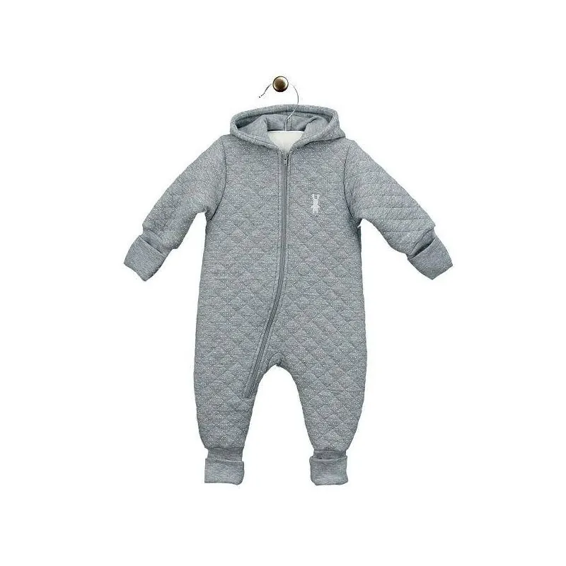 Kokvilnas kombinezons zīdainim ar kapuciPriekšpusē aizdarāms ar rāvējslēdzējuĀrpuse un odere izgatavotas no kokvilnas, iekšpusē plāns siltinājumsKrāsa: pelēkaKombinezons piemērots pavasarim/vasarai, vēsiem vasaras vakariemRažots Lietuvā