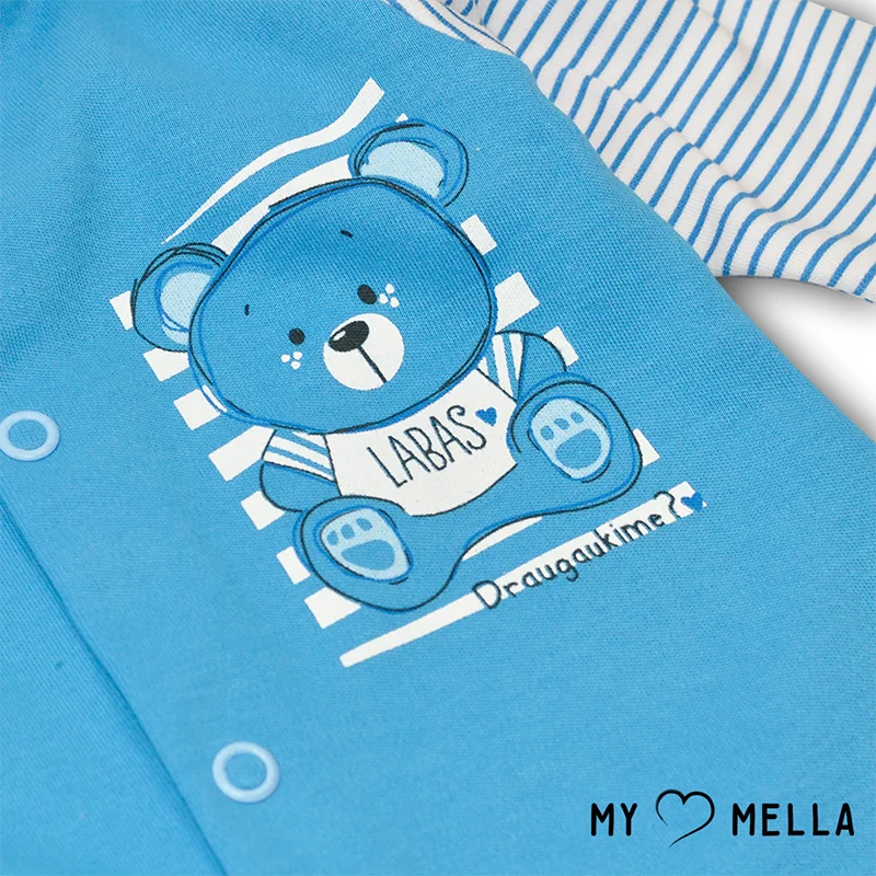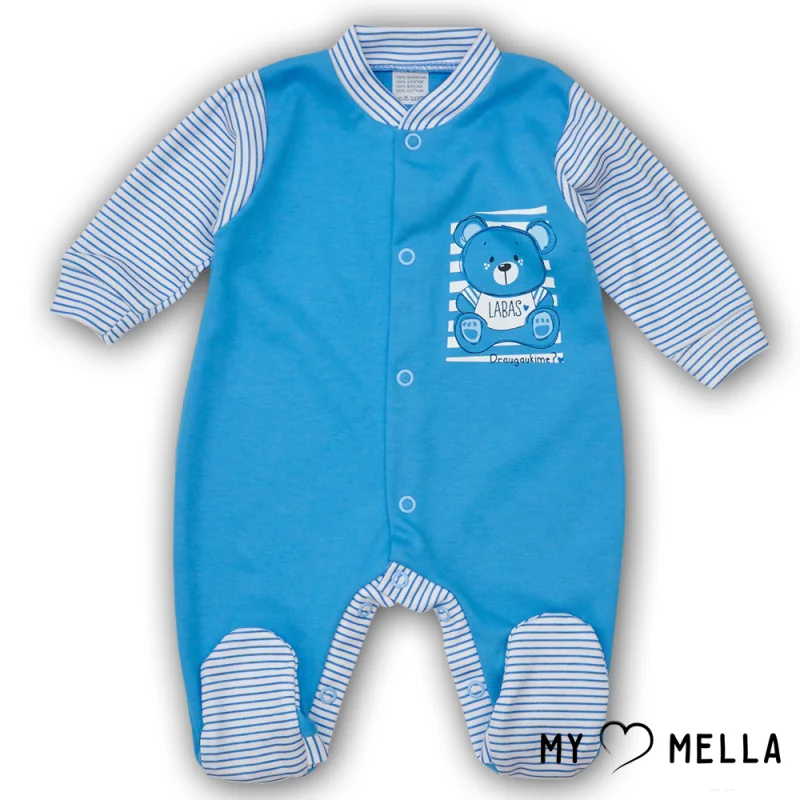Spēlīgs un stilīgs kombinezons zīdainim "Sveiks".Saskaņots moderns dizains un tradīciju praktiskums.Īpaši mīksta kokvilnas kombinezons, piemērots kā virsdrēbes vai miega apģērbs: viengabalains un drošs.Visi izmēru modeļi atverami ar spiedpogām priekšpusē un abās kājiņās, tāpēc ir īpaši ērti pārģērbt pat guļošu mazuli.Var iegādāties šīs kolekcijas: bodiju, biksītes.Mazgāt 40 grādu temperatūrā.Izstrādāts Lietuvā!