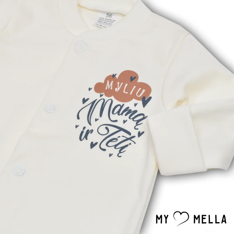 Spēlīgs un stilīgs zīdaiņu kombinezons "Mīlu".Saskaņots moderns dizains un tradīciju praktiskums.Īpaši mīksts kokvilnas kombinezons, piemērots kā virsdrēbes vai miega apģērbs: viengabalains un drošs.Visi izmēru modeļi ir atpogājami ar spiedpogām priekšpusē un abās kājiņās, tāpēc ir ļoti ērti pārģērbt pat guļošu mazuli.Var iegādāties no šīs kolekcijas: bodiju, biksītes.Mazgāt 40 grādu temperatūrā.Izstrādāts Lietuvā!