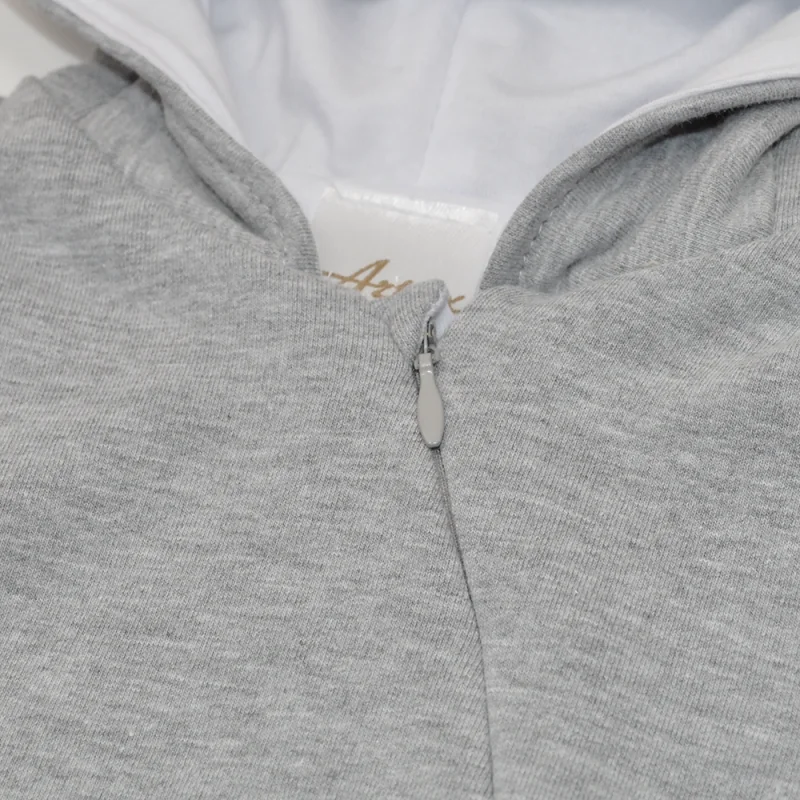 Kokvilnas kombinezons zīdainim ar kapuci;Priekšpusē aizdarāms ar rāvējslēdzēju;Izgatavots no OEKOTEX sertificētas un mīkstas 100% kokvilnas;Krāsa: Pelēka;Kombinezons piemērots siltam pavasarim/rudenim, aukstiem vasaras vakariem;Ražots Polijā;
