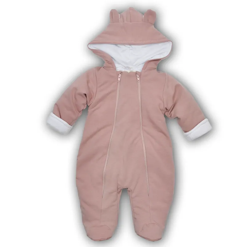 Siltināts 100% kokvilnas kombinezons zīdaiņiem ar kapuci un aizvērtām kājiņām.