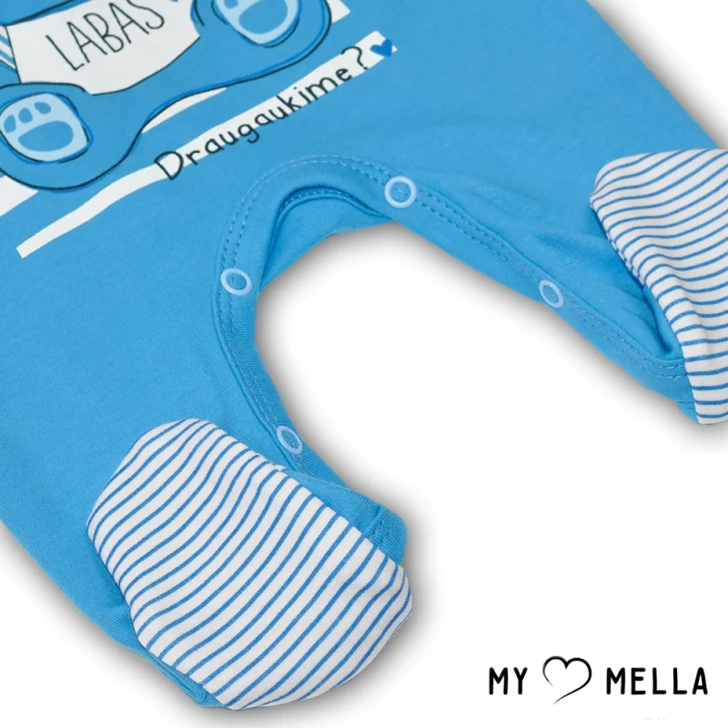 Spēlējošs un stilīgs komplekts zīdainim "Sveiki".Saskaņots moderns dizains un tradīciju praktiskums.Ļoti mīkstas kokvilnas kombinezons, piemērots kā virsdrēbes vai miega apģērbsRāpulīšu pleciņi un kājstarpes aizdarāmas ar spiedpogām, tāpēc būs ērti ne tikai uzvilkt, bet arī nomainīt autiņbiksītes.Krekliņi ar garām piedurknēm priekšpusē aizdarāmi ar spiedpogām. Var iegādāties šīs kolekcijas: kombinezonu, bodiju, biksītes.Mazgāt 40 grādu temperatūrā.Izveidots Lietuvā!