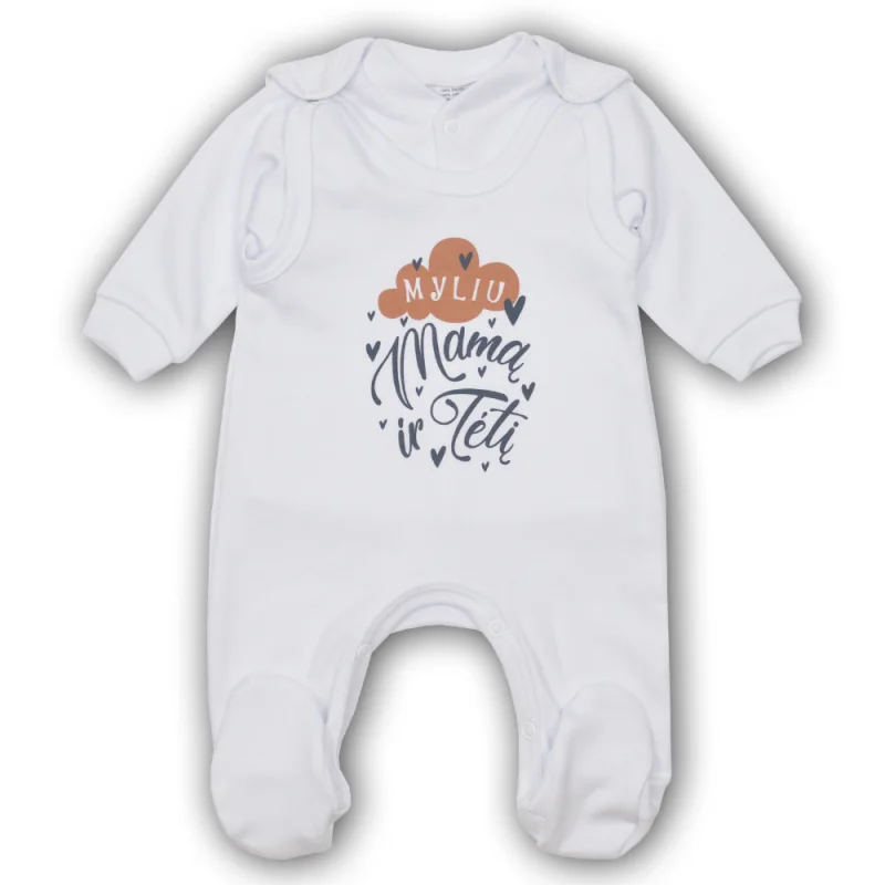 Spēlīgs un stilīgs komplekts zīdainim "Mīlu".Saskaņots moderns dizains un tradīciju praktiskums.Īpaši mīksts kokvilnas kombinezons, piemērots kā virsdrēbes vai miega apģērbsRāpulīšu pleci un kājstarpes aizdares ar spiedpogām, tāpēc būs ērti ne tikai apģērbt, bet arī nomainīt autiņbiksītes.Krekliņi ar garām piedurknēm priekšpusē aizdares ar spiedpogām. Var iegādāties šīs kolekcijas: kombinezonu, bodiju, biksītes.Mazgāt 40 grādu temperatūrā.Izveidots Lietuvā!