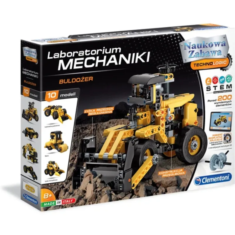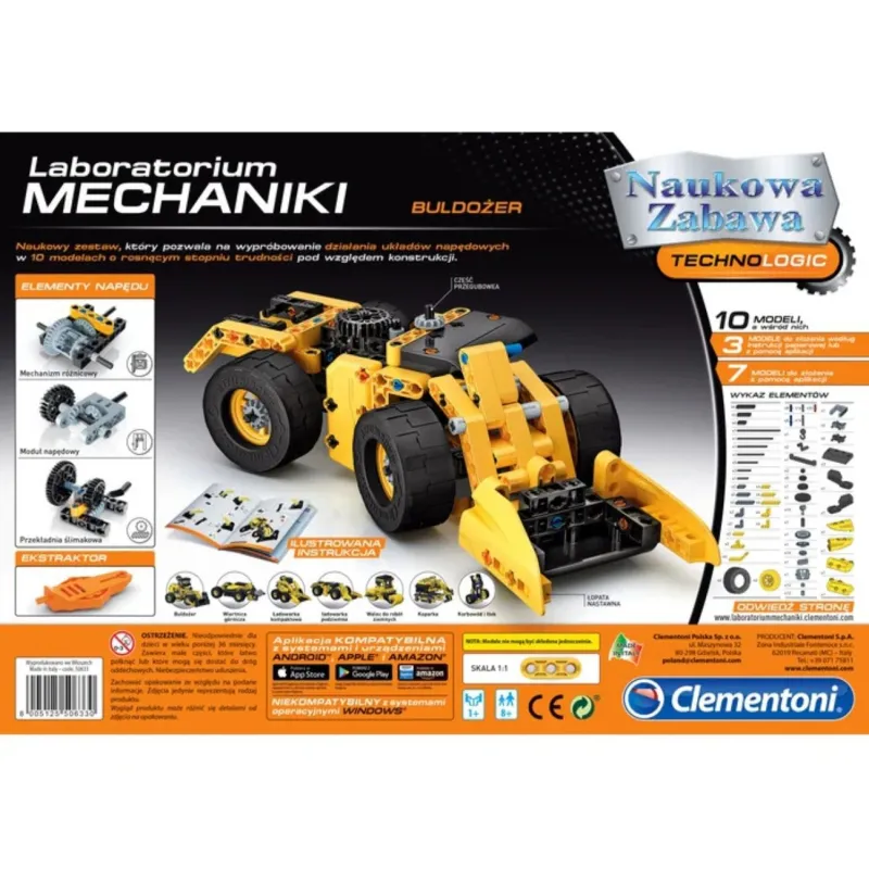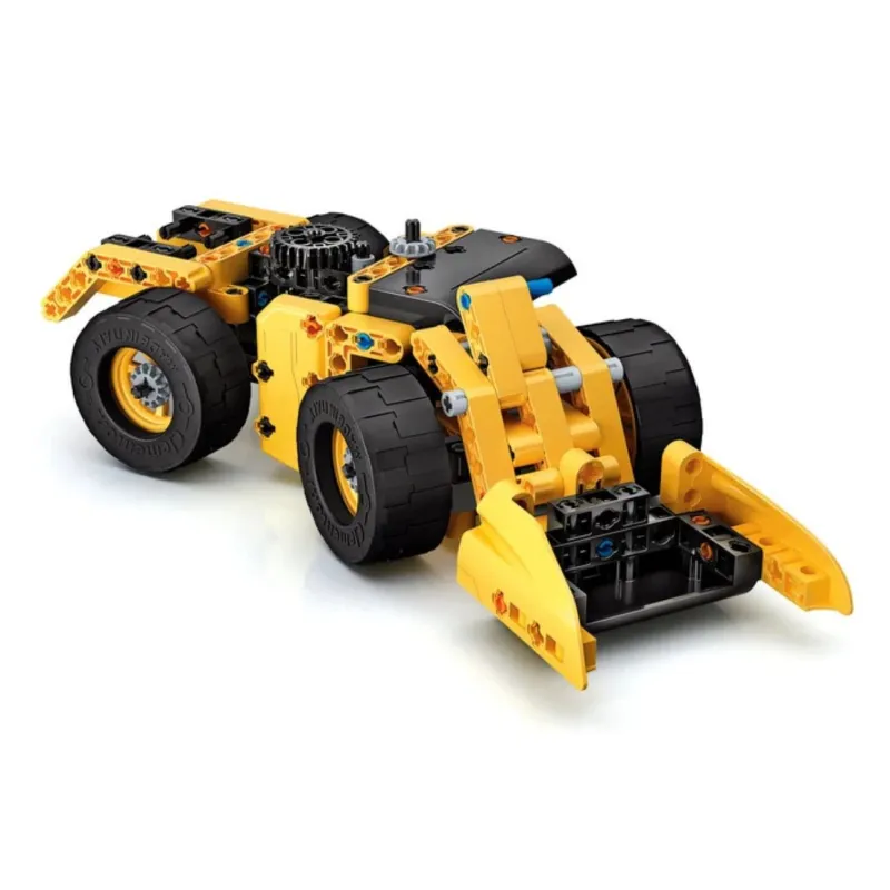 Komplekts buldozera un 9 citu dažādu būvniecības transportlīdzekļu konstruēšanai! Piemērots bērniem no 8 gadu vecuma.