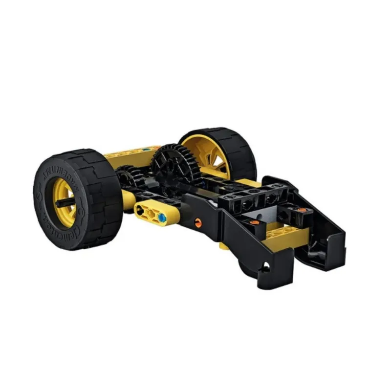 Komplektā ir vairāk nekā 200 detaļas, ieskaitot gludus vai zobainus riteņus, zobratus, diferenciāļus, skrūves, radžotas riepas, sijas un plāksnes;