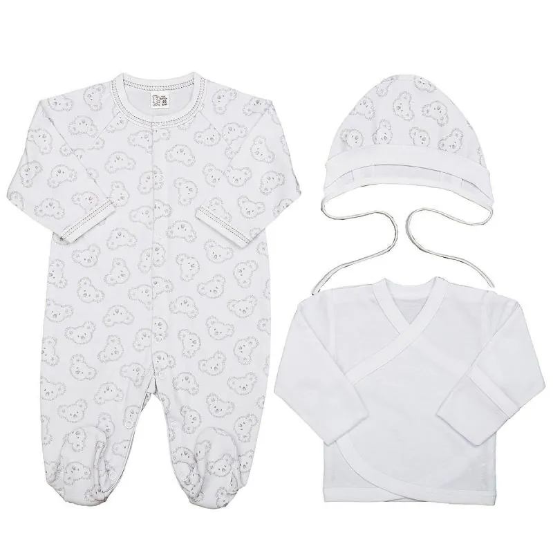 Mīksta kokvilnas 3 daļu komplekts zīdaiņiem un jaundzimušajiem.Komplektu veido:Kombinezons, ietinamais krekls, cepurīte.Izgatavots no OEKOTEX sertificētas un mīkstas 100% kokvilnas.Krāsa: balta.Mazgāt automātiskajā veļas mašīnā 40 grādu temperatūrā.Izgatavots Lietuvā.Komplekts iepakots kastē.Lieliski piemērots dāvanai.
