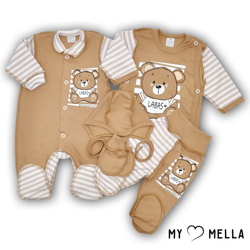 Jaundzimušā komplekts piecās daļās "Labdien", kakao, 56-62cm.