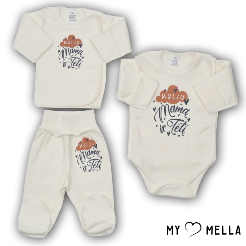 Kokvilnas 5 daļu komplekts zīdaiņiem ar apvērstām šuvēm.