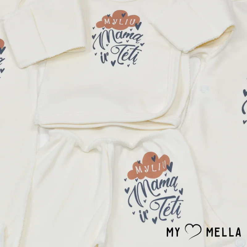 Kokvilnas 5 daļu komplekts zīdaiņiem ar apvērstām šuvēm.