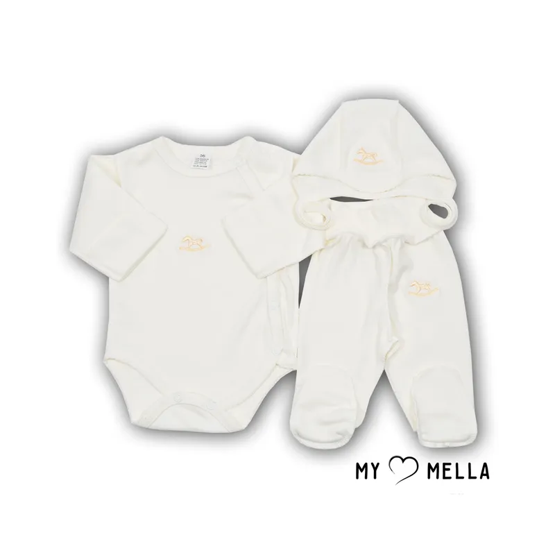 Mīksts kokvilnas 3 daļu komplektiņš zīdaiņiem un jaundzimušajiem ar mazu aplikāciju;