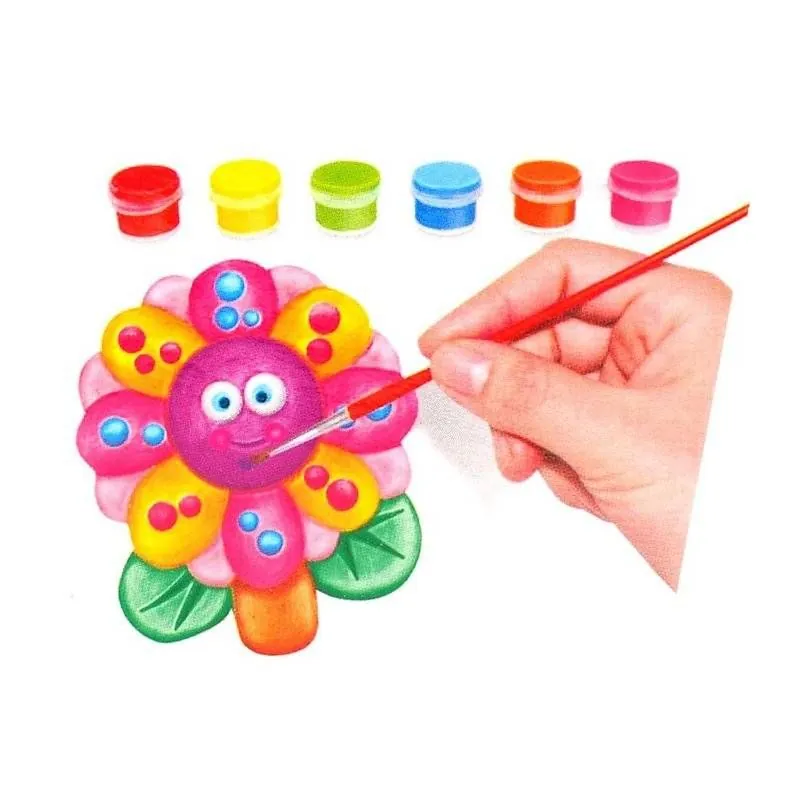 Radošais komplekts, kas sastāv no 6 dažādām krāsām, otas, māla, formām, kurās tiek ievietots māls, un citiem piederumiem. Ar šo komplektu jūs izveidosiet 6 dažādas formas, kuras jūsu bērns varēs krāsot ar 6 krāsu krāsām. Jautra nodarbe radošam vakaram. Attīsta smalko motoriku, uztveri un radošumu!