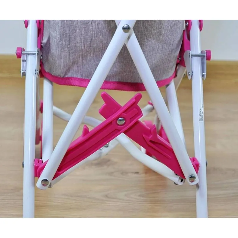 Metāla rāmis.Drošības jostas.Plastmasas riteņi.Aizsargājošs slēdzis pret automātisku salocīšanu.Salokāms mehānisms – lietussarga tipa.Bērnu vecums 3+Ratiņi salokās plakani.Audums no poliestera - var mazgāt.