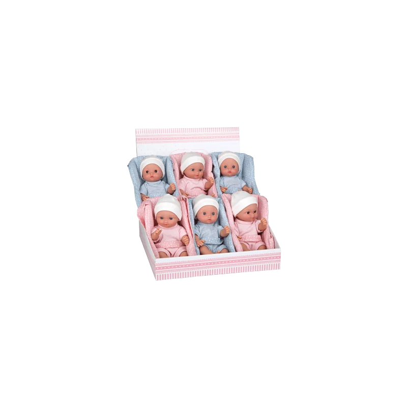 Šīs mīļās un burvīgās lellītes - mazuļi, noteikti patiks visiem leļļu mīļotājiem.Lellīšu acis ir ļoti izteiksmīgas, rada reālistiska skatiena iespaidu.Lellīšu kājas un rokas ir elastīgas, tās var sēdināt, stāvēt, mainīt pozas, ērti apģērbt.Lellītes izgatavotas no polivinila - ļoti maiga un mīksta materiāla.Lellītes apģērbtas dizaineru veidotās drēbēs.Visas drēbes ir roku darbs, pārdomātas līdz sīkākajai detaļai un izgatavotas ļoti rūpīgi.Ir mīksta nesēja ar rokturiem;Lellītes smaržo pēc vaniļas.Var mazgāt.Lellītes augstums: 26 cm.Droša un piemērota spēlēšanai bērniem no 2+ gadiem.Visas lelles ir sertificētas ar CE zīmi.Lellīšu un to drēbju izcelsmes valsts - Spānija.