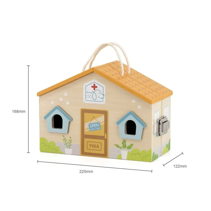 Koka krāsaina dzīvnieku veterinārā klīnika koferī no "Viga" ir viena no galvenajām rotaļlietām, kas ļauj jūsu bērnam ienākt aizraujošā un radošā spēļu pasaulē.