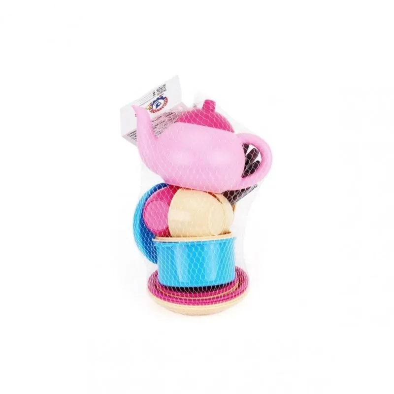 Spēles ar rotaļlietu varianti ir daudz – bērns var uzvārīt tēju sev un mammai vai uzklāt galdu draugiem un aicināt ciemos lācīšus.Šādas lomu spēles attīsta bērnu iztēli un fantāziju, domāšanu, smalko motoriku, komunikācijas un sociālās prasmes.Rotaļlieta izgatavota no izturīga augstas kvalitātes bez smaržas plastmasas bez asām malām.Iepakojums – tīkliņš ar krāsainu kartona etiķeti.Komplektā ietilpst: Tējkanna ar vāku;4 tases ar apakštasītēm;Panna ar vāku;Panna;4 šķīvji;Karotes - 4 gab.;Dakšas - 4 gab.;Naži - 4 gab.
