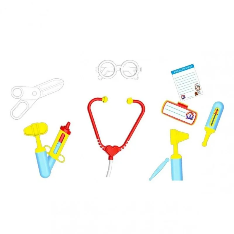 Psihologi apgalvo, ka bērni, kuri spēlē ārstu, ir daudz mierīgāki īstā ārsta kabinetā.Komplektā ir 10 populārākie instrumenti. Starp tiem ir: šļirce, termometrs, fonendoskops utt. Bez šaubām, "izārstēs" viņa mīļāko lācīti no jebkuras slimības.Preces izmēri: 27 х 22.5 х 8.5 cm.Piemērots bērniem no 3 gadiem.