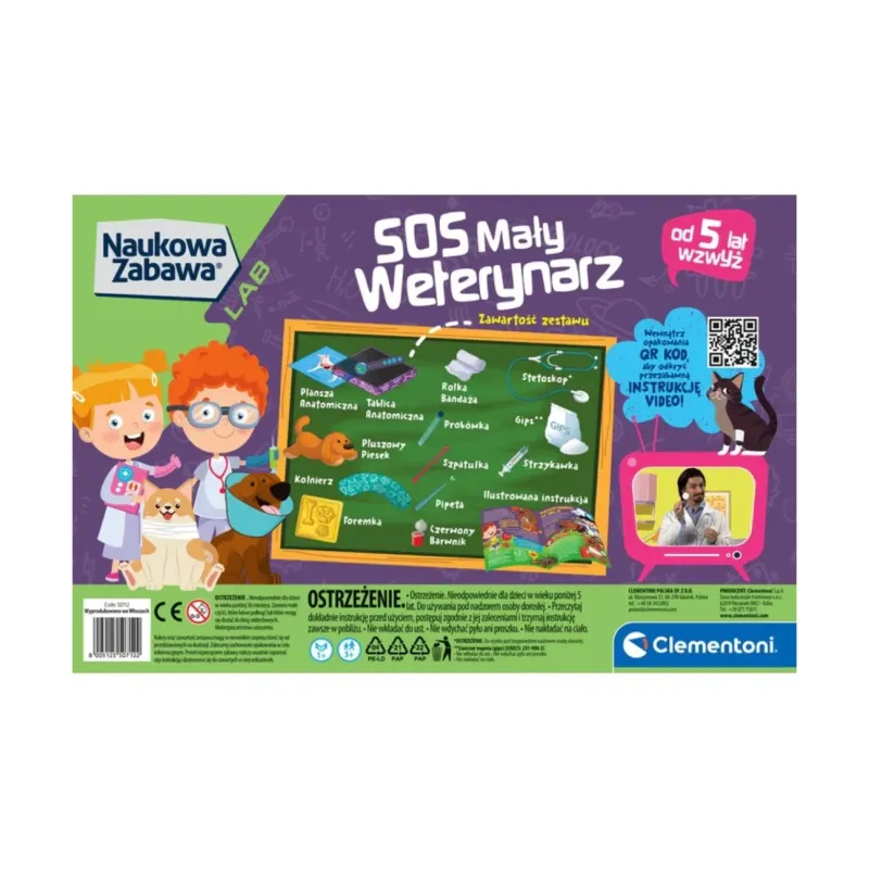 Ar Clementoni mazā veterinārā komplektu bērni izjutīs īsta dzīvnieku ārsta lomu. Paredzēts bērniem no 5 gadu vecuma.