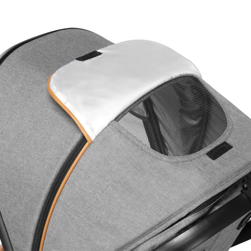 Prailgintas stogelis su langu - suteikia vaikui komfortą ir apsaugo nuo lietaus, vėjo ir saulės. Užpakalinėje lopšio dalyje esantis langas užtikrina tinkamą ventiliaciją.