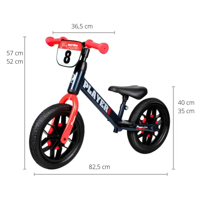 Balansinis dviratukas PLAYER turi unikalų rėmą ir reguliuojamą, paminkštintą sėdynę, kuri prisitaiko prie Jūsų vaiko.