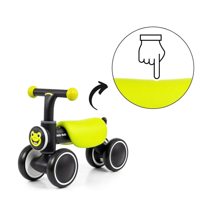 Dėl stabilios keturių ratų konstrukcijos mažyliai gali užtikrintai pradėti savo važiavimo nuotykius, natūraliai ir maloniai lavinti pusiausvyrą ir motorinę koordinaciją. Lengvas rėmas leidžia vežimėlį lengvai nešti ir manevruoti, o patogi, minkšta sėdynė užtikrina komfortą net ir ilgo žaidimo metu.