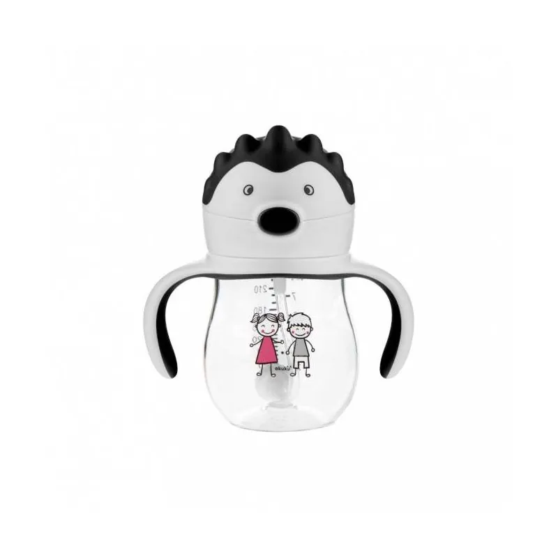 Akuku neišsiliejantis mokomasis puodelis 250 ml su svareliu ir dviem rankenėlėmis, A0034