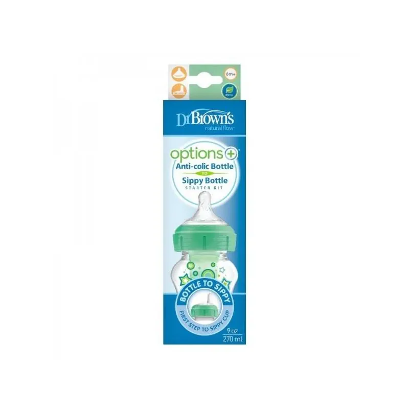 DR.BROWN'S buteliukas pereinamasis OPTIONS+ plačiu kakleliu, žalias 270ml + silikoninis snapelis