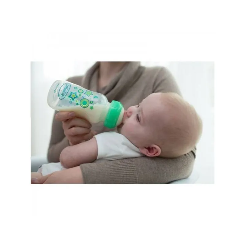 Pakuotėje: 1 buteliukas su vidine oro cirkuliacijos sitema, 1 žindukas (nuo 6 iki 9 mėn.), 1 silikoninis snapelis (nuo 6+ mėn.), 1 valymo šepetėlis.