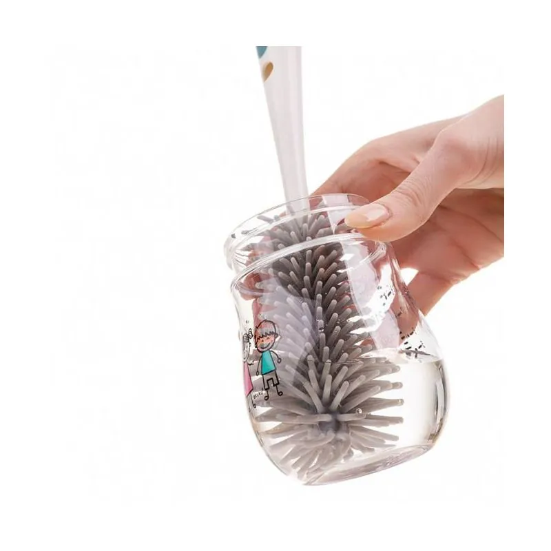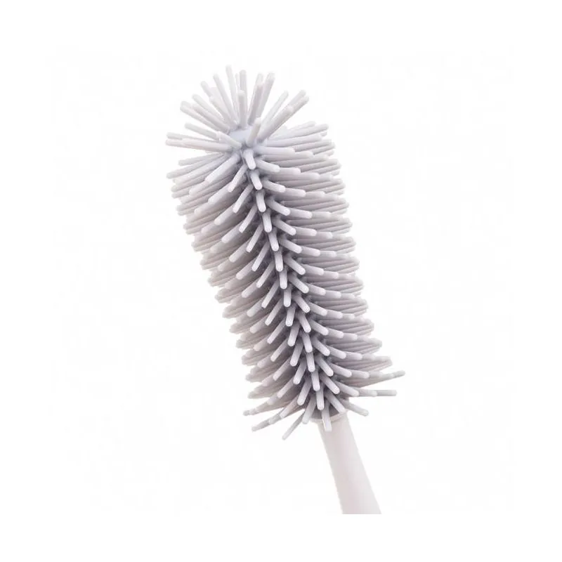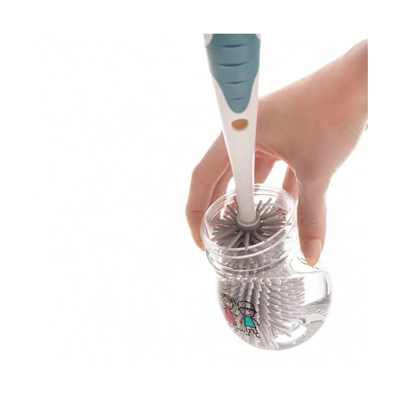 Butelių valymo šepetėlis su minkštais silikoniniais šereliais užtikrina, kad buteliai ir taros būtų išvalomi švariai ir nesibraižant paviršių. Tinkamai profiliuotas antgalis pasiekia sunkiai pasiekiamas vietas, o patogi neslystanti rankena užtikrina stabilų sukibimą. Turi spiralinį antgalį žindukams valyti.