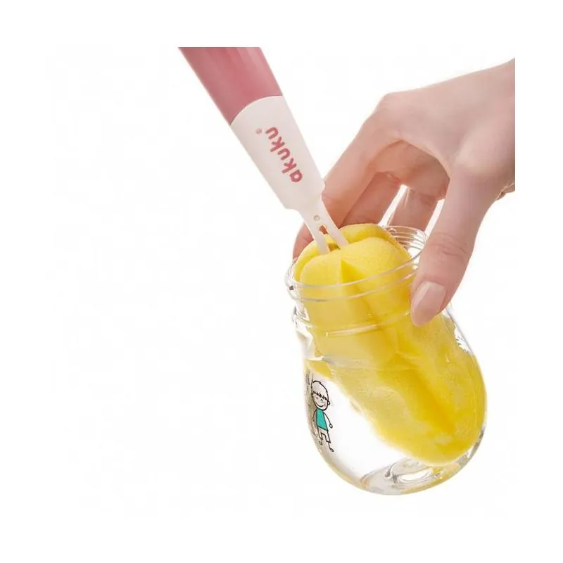 Akuku buteliukų, puodelių ir žindukų silikoninis šepetys su kempine, beige/pink, A0512