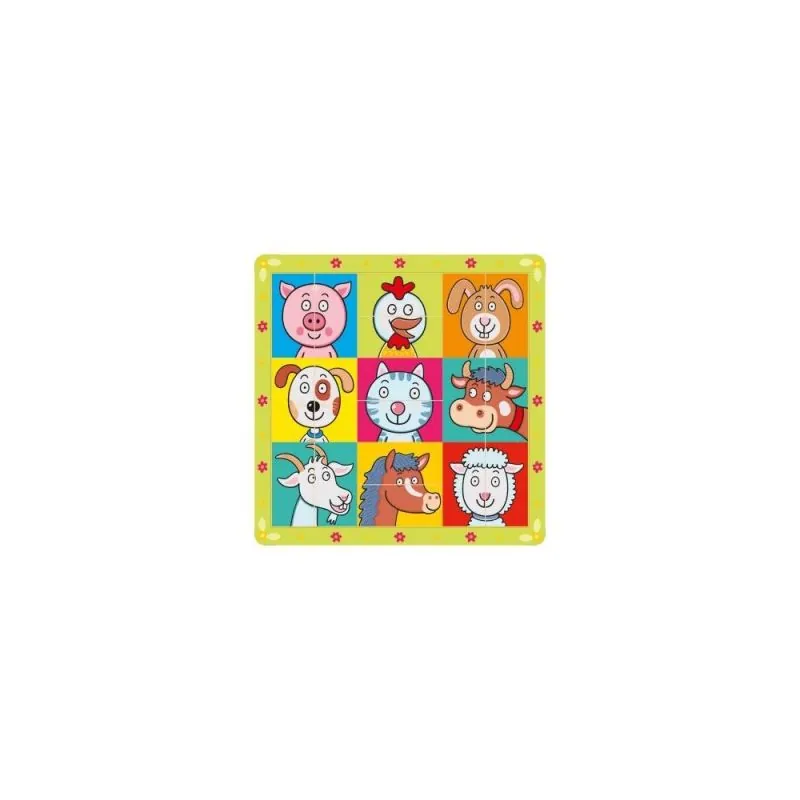Gyvūnų paveiksliukai padalinti į 2 dalis, horizontaliai ir vertikaliai. Mažylis turi padėti gyvūnui atrasti savo kitą pusę arba antrą tokios pačios spalvos detalę. Patartina, vaikučio pasiteirauti: "ką veikia paveiksliukų personažai? Plaukia, šoka, skaito, skraido ir t.t..."