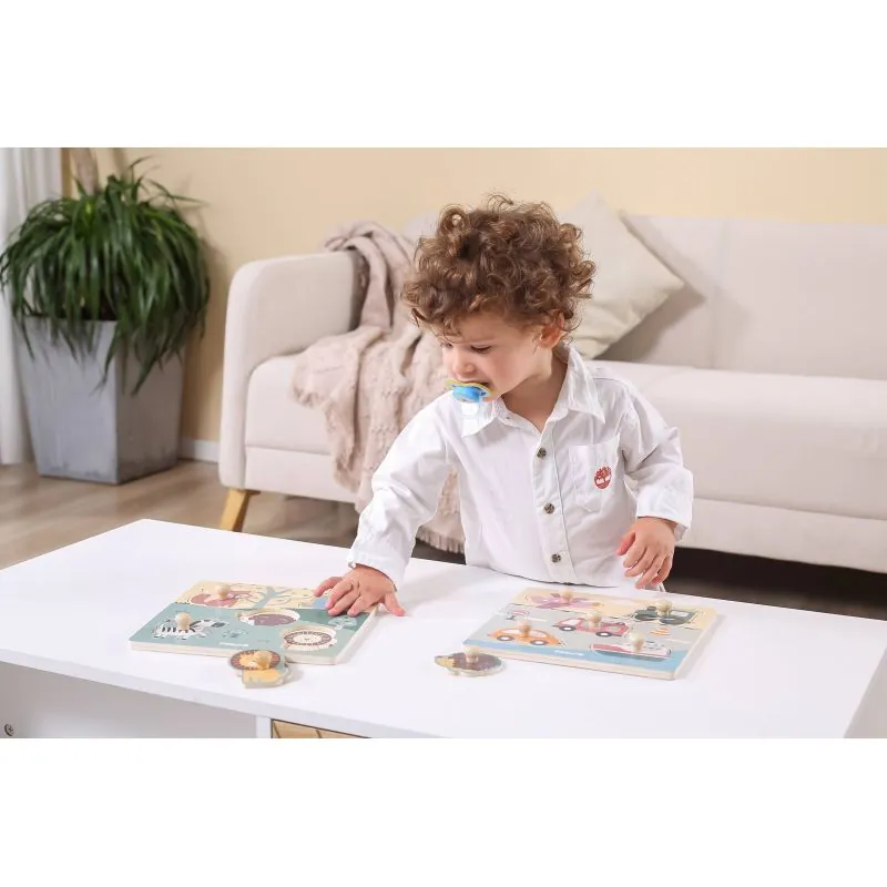 Medinė lavinamoji dėlionė su rankenėlėmis - puiki priemonė supažindinti mažylį su gyvūnais.