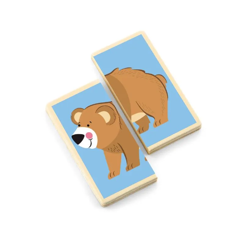 Smagu surasti ir suderinti kitą pusę iš 9 padalytų laukinių gyvūnų paveikslėlių (liūtas, tigras, dramblys, zebras, žirafa, beždžionė, begemotas, lokys ir panda).