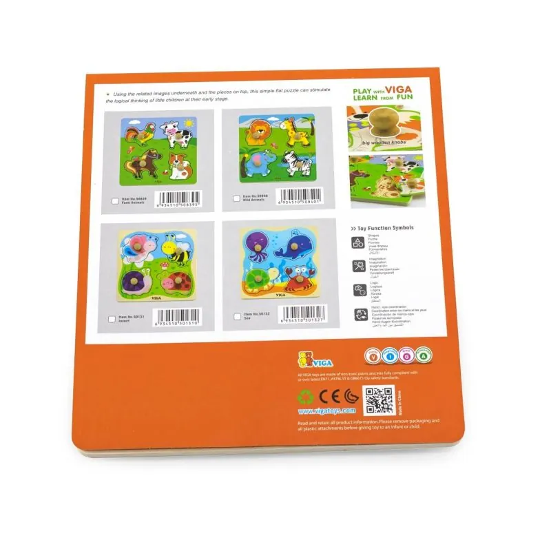 Ši graži dėlionė yra paprasta, plokščia, su susijusiais paveikslėliais apačioje ir elementais viršuje, skatinanti mažų vaikų loginį mąstymą nuo labai ankstyvo amžiaus;