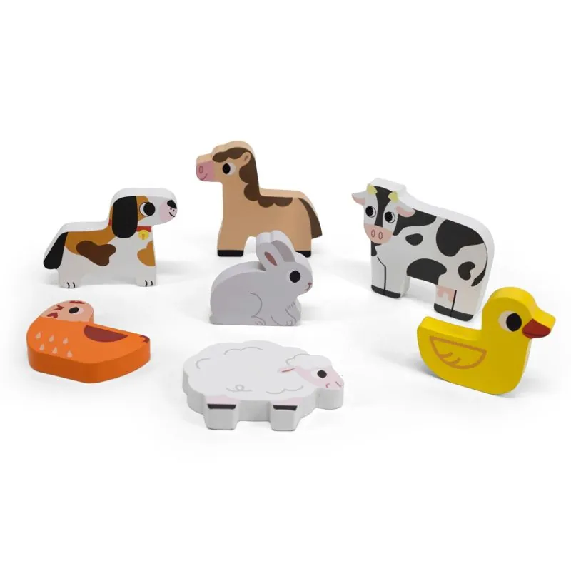 Rinkinį sudaro septynios sunumeruotos detalės, kurių tema – ūkio gyvūnai, ir pagrindas su paveikslėlio kopija;